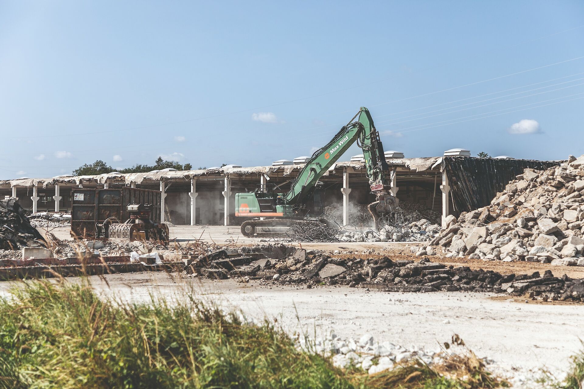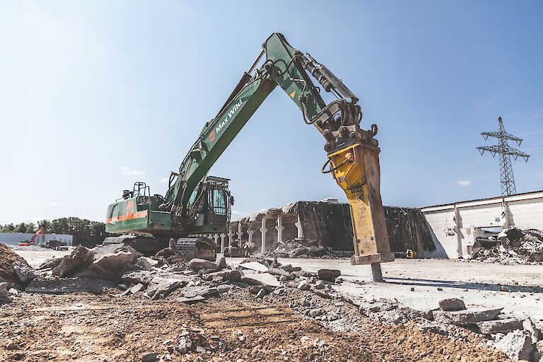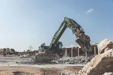 • Rückbau von Produktionshallen, Hochregallager, Büroanbauten und Außenanlagen