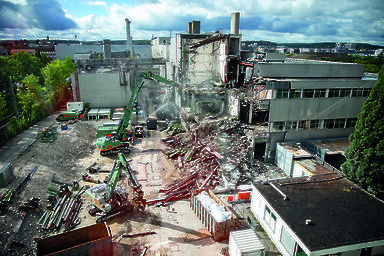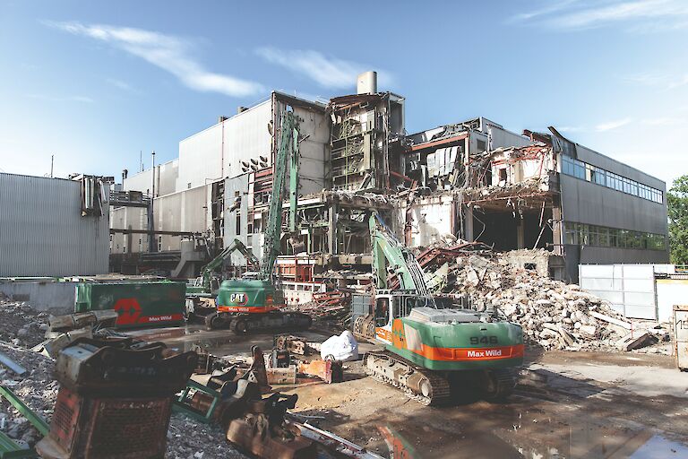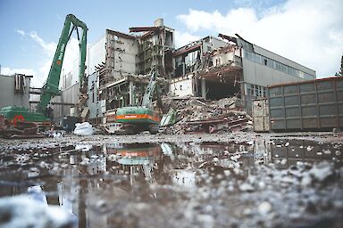 • Der Rückbau wurde auf bestehendem Werksgelände durchgeführt, weshalb mit beengten Platzverhältnissen gearbeitet werden musste