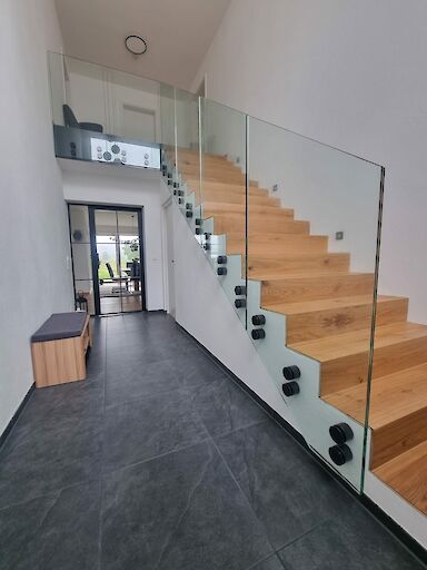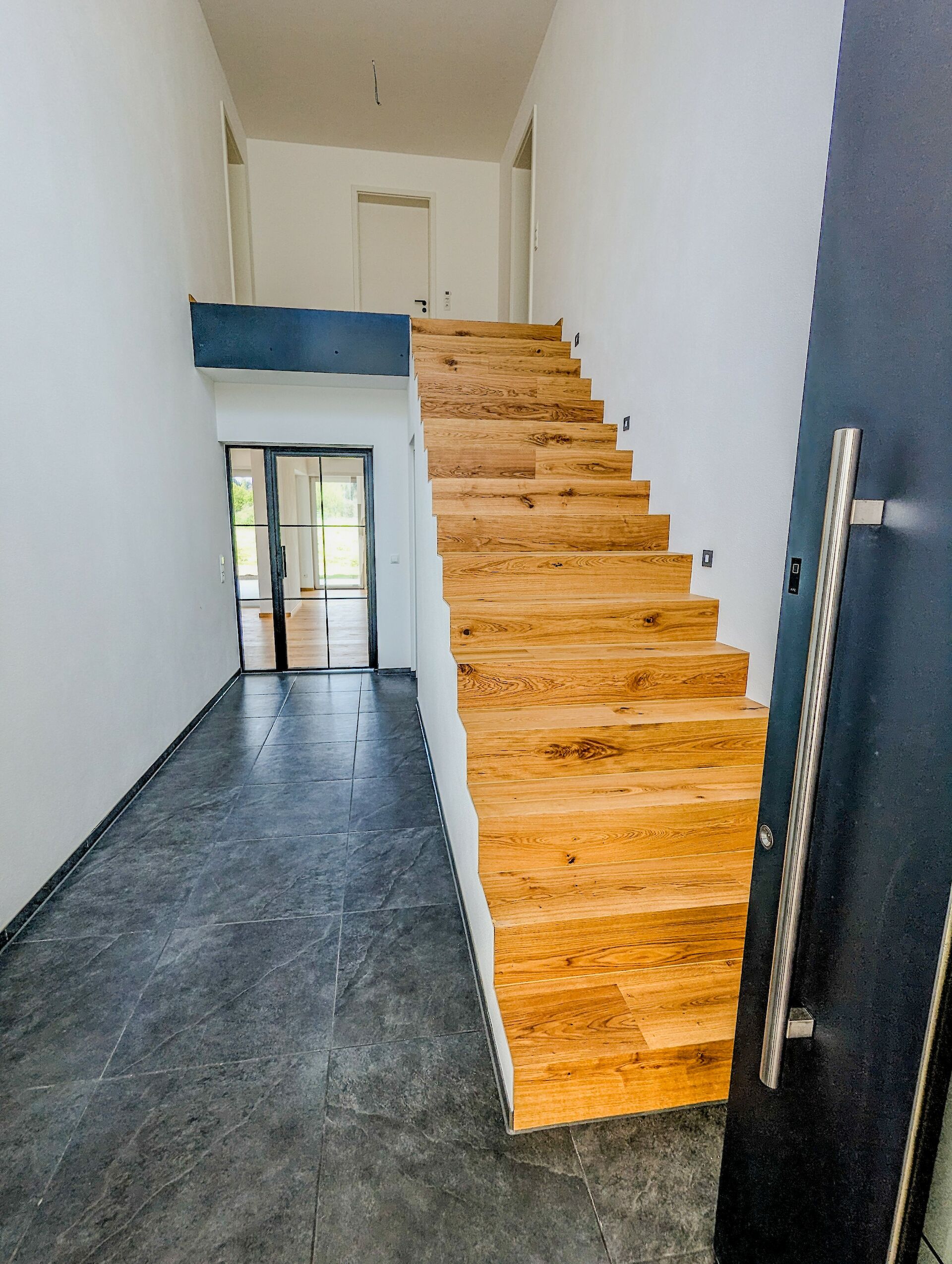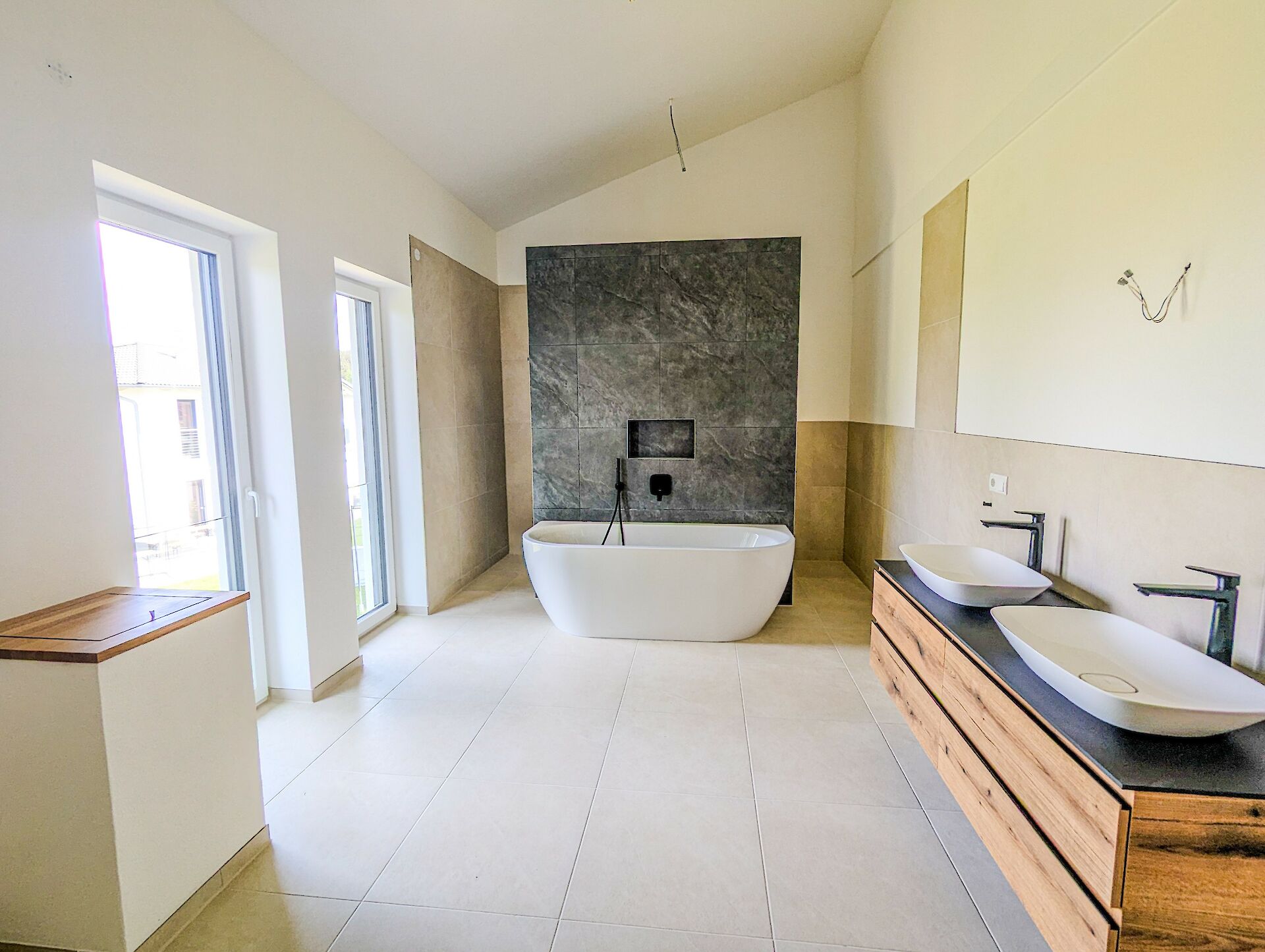 Mit einer Wohnfläche von 270 m² bietet das Gebäude großzügigen Raum für individuelles Wohnen. Die Ausstattung folgt einem klaren Nachhaltigkeitsanspruch: Eine moderne Luft-Wärmepumpe sorgt für regenerative und effiziente Wärmeversorgung, während 3-fach verglaste Fenster, elektrische Rollläden und Raffstores sowie eine Fußbodenheizung mit Einzelraumsteuerung höchsten Wohnkomfort gewährleisten.