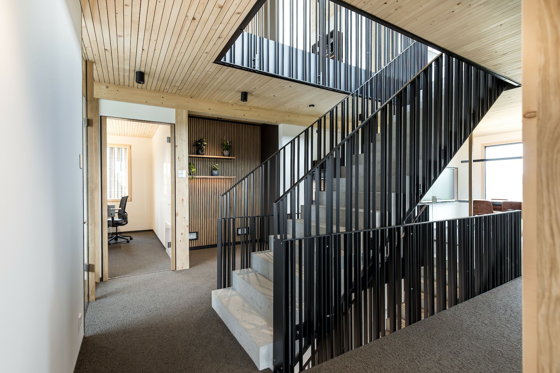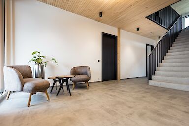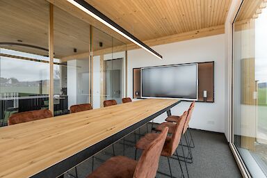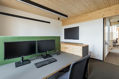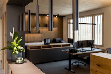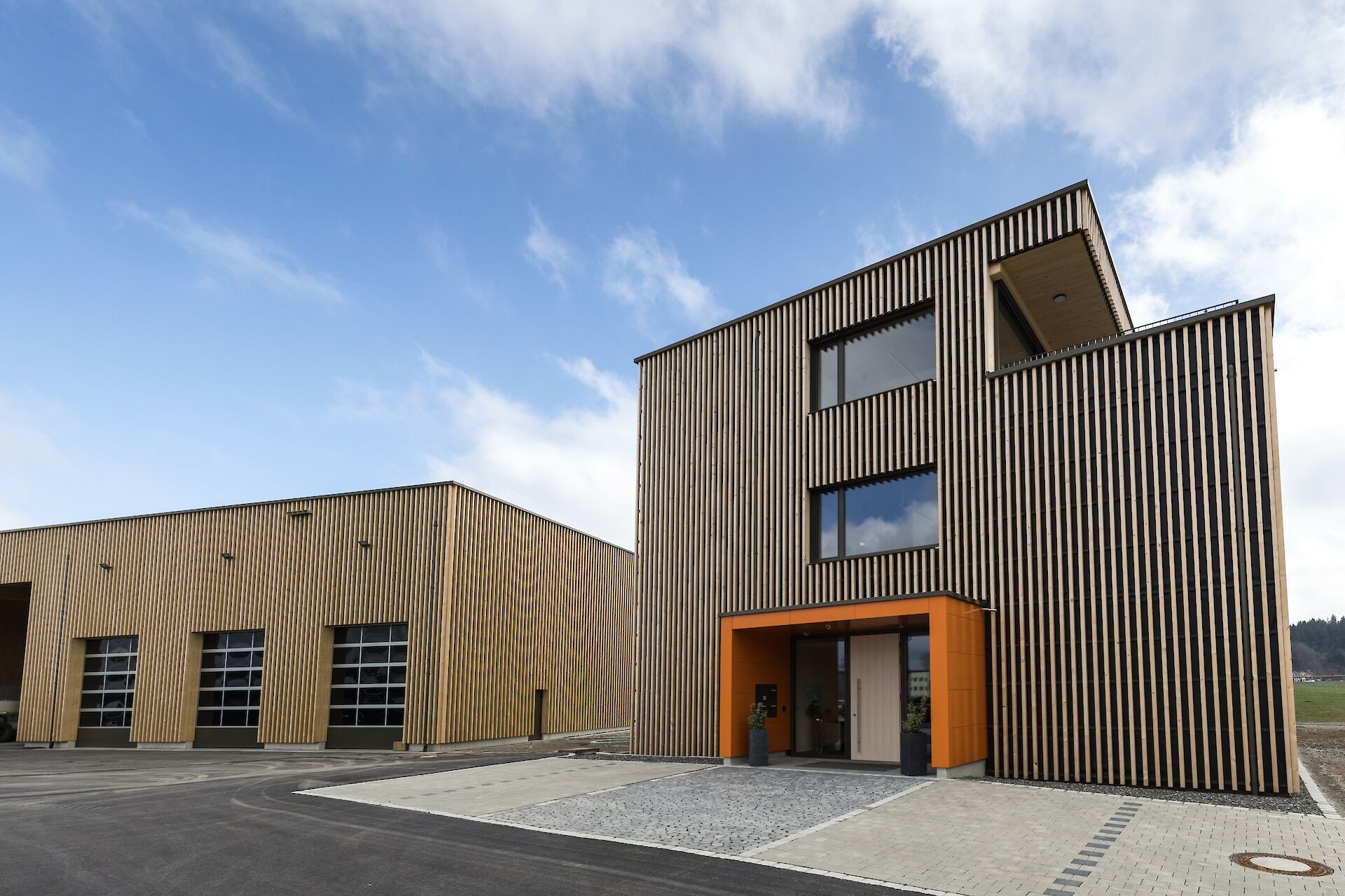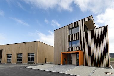 Der etwa 425 m² große Bürokomplex bietet eine moderne Arbeitswelt für die Mitarbeiterinnen und Mitarbeiter mit viel Platz für Austausch und Kreativität. Außerdem wurde eine 800 m² große Halle erstellt, welche in eine Kalt- und Warmhalle aufgeteilt ist. Nebenan wurde zudem ein Waschplatz erstellt. Der gesamte Neubau ist in nachhaltiger Holzbauweise entstanden und mit einer Kombination aus Wärmepumpe und PV-Anlage ausgestattet.