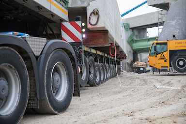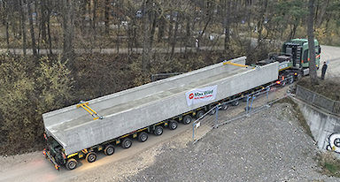 • Abmessungen größtes Betonteil 22 m lang – 4,1 m breit – 2 m hoch – 105 t schwer