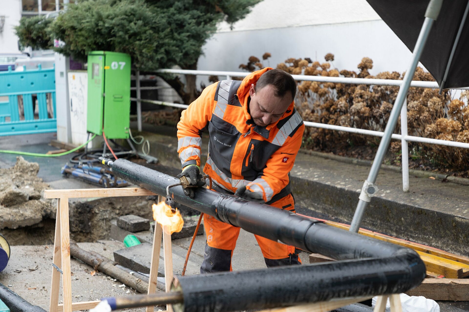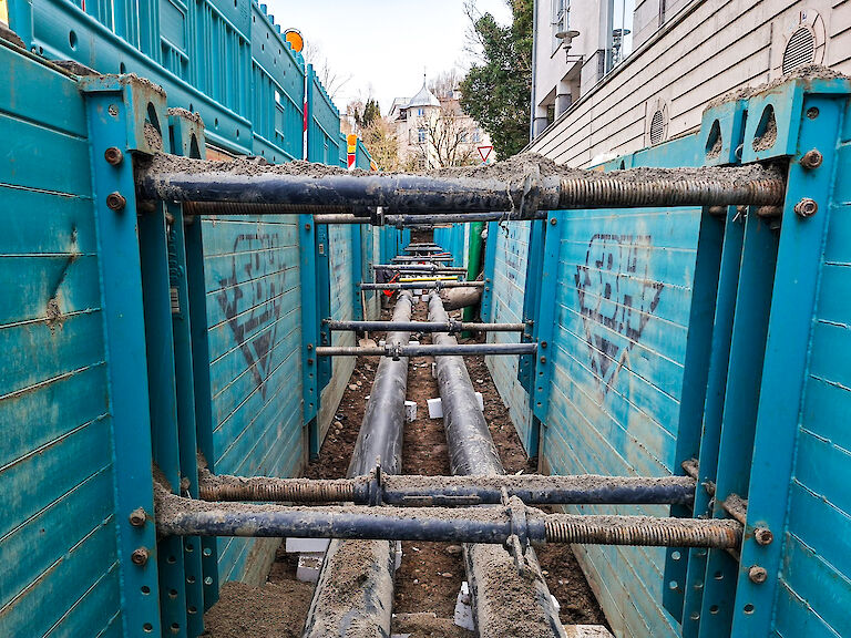 Max Wild baut im Auftrag der Technische Werke Schussental GmbH & Co. KG ein leistungsfähiges Fernwärmenetz in der Ravensburger Innenstadt aus. Seit 21.01.2026 werden rund 500 m KMR‑Hauptleitungen DN 150 (DA 280) mit über 200 Schweißnähten verlegt, inklusive Hausanschlüssen und Vorstreckungen für zehn Gebäude (u. a. Landratsamt, Wohn- und Bürogebäude).