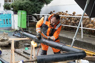 Eine technische Herausforderung ist der über das Dach geführte Hausanschluss der Kuppelnau-Grundschule, der nicht konventionell verschweißt, sondern mittels metallisch dichtender Pressverbindungen hergestellt wird. Außerdem gilt die Querung der stark befahrenen Gartenstraße als besonders anspruchsvoll. Diese wird in einer koordinierten Nachtaktion in KW 18 umgesetzt.