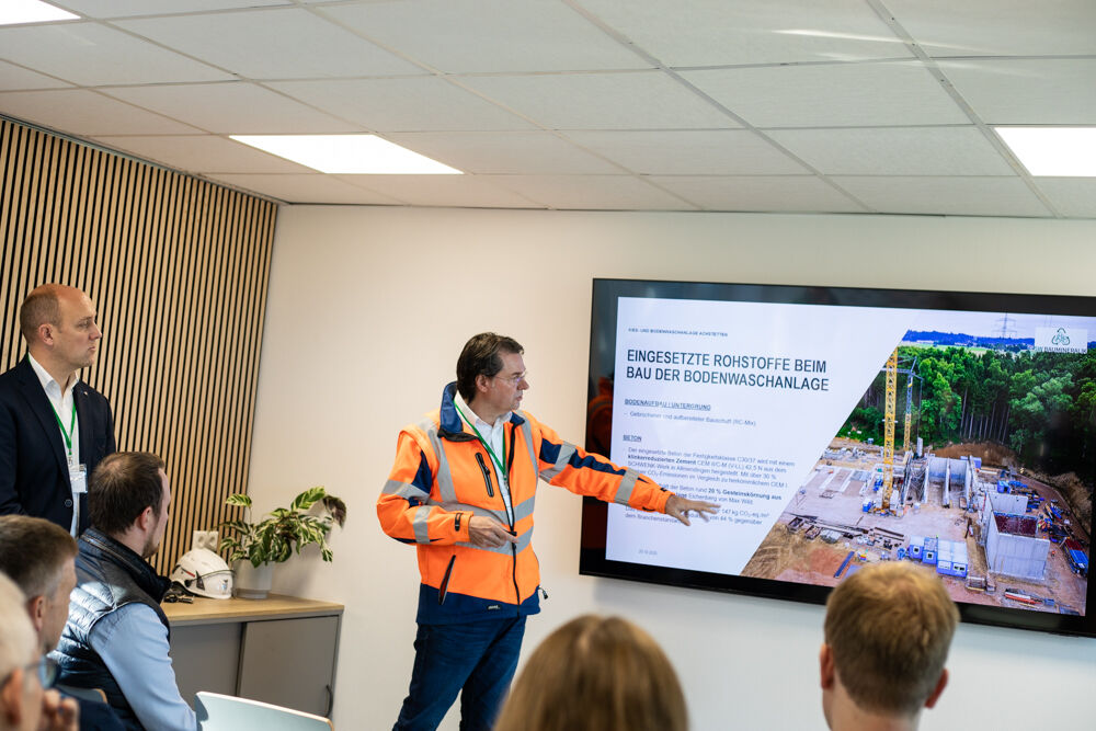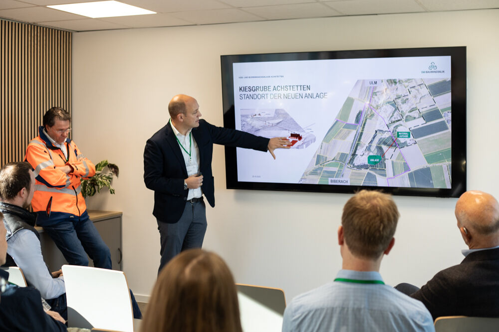Am Mittwoch, den 29.10.2025 fand unsere Informationsveranstaltung zum Thema Ressourcenschonung und CO2-Reduzierung beim Bau der Kies- und Bodenwaschanlage in Achstetten statt.