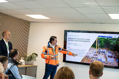 Im Anschluss ging es raus auf die Baustelle, wo die Teilnehmenden live erleben konnten, wie das Vorhaben Form annimmt. Den Abschluss bildete ein gemütlicher Mittagsnack mit Raum für Gespräche, Fragen und neue Impulse.